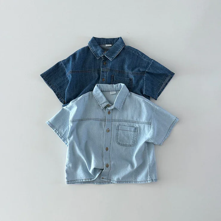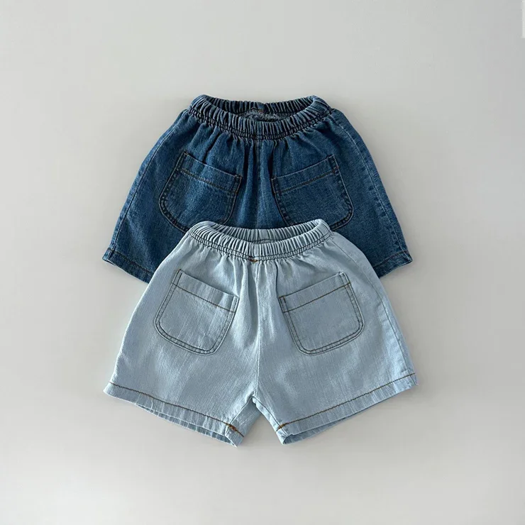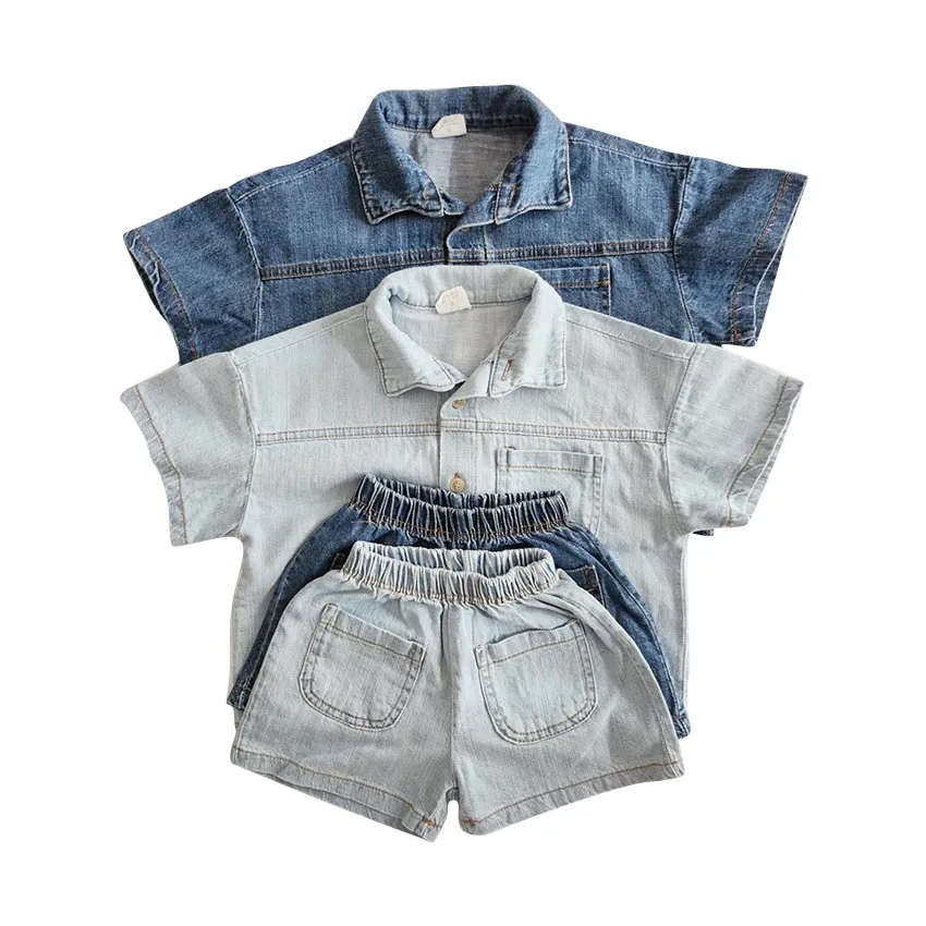 Wholesale Baby Clothes Sets Short Sleeves Neutral Baby Toddler Short Sleeve Denim Outfit Sets for Summer