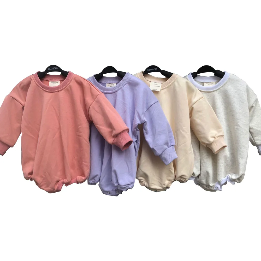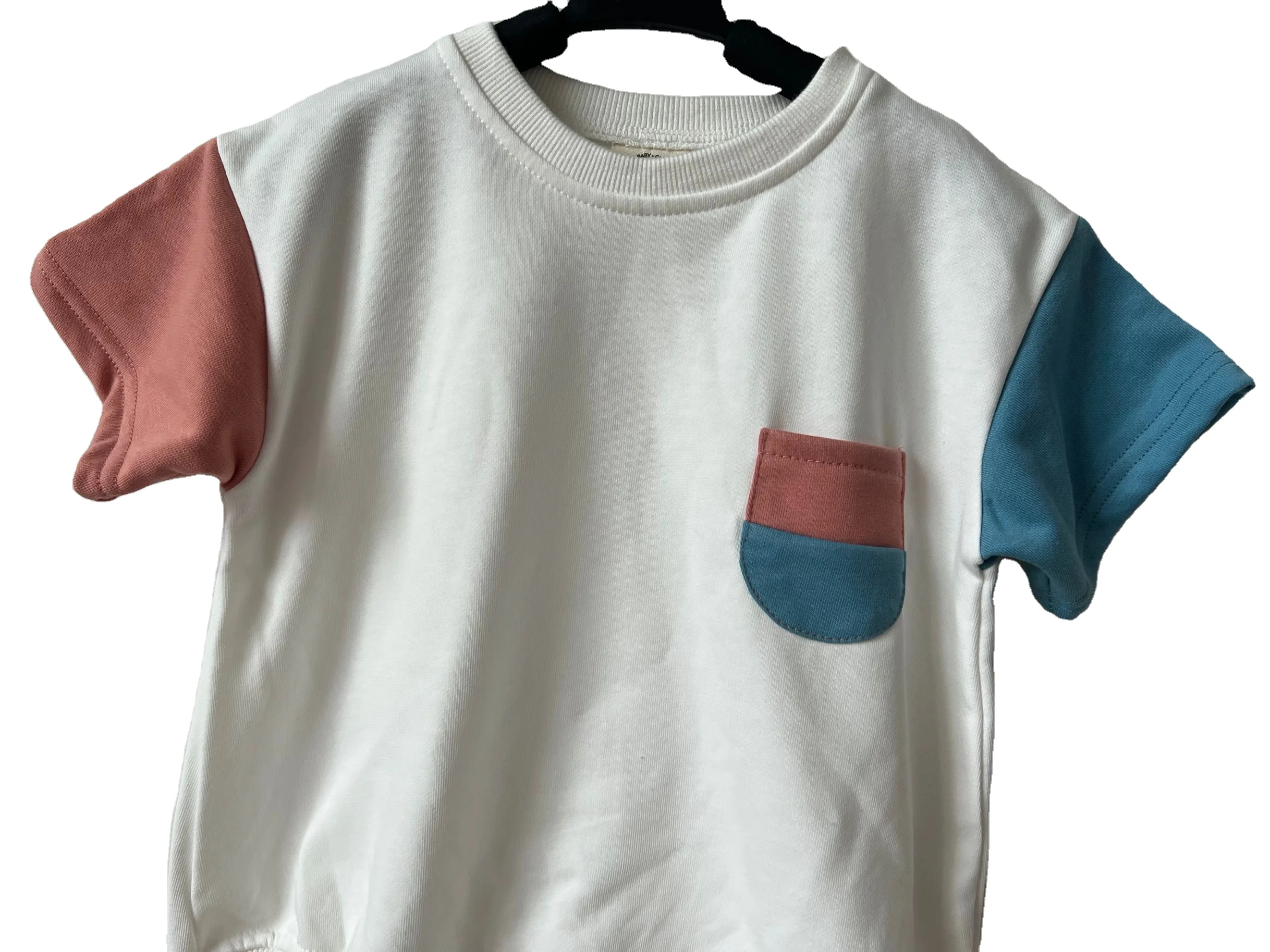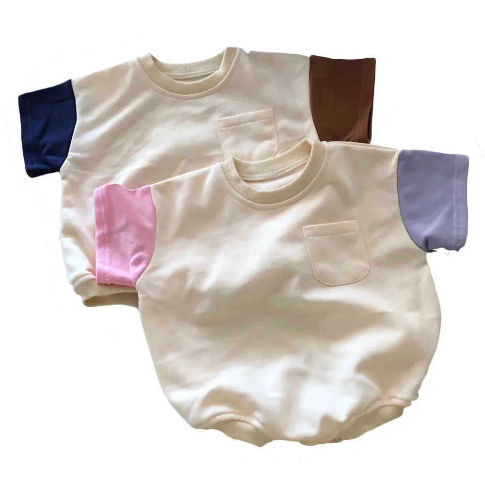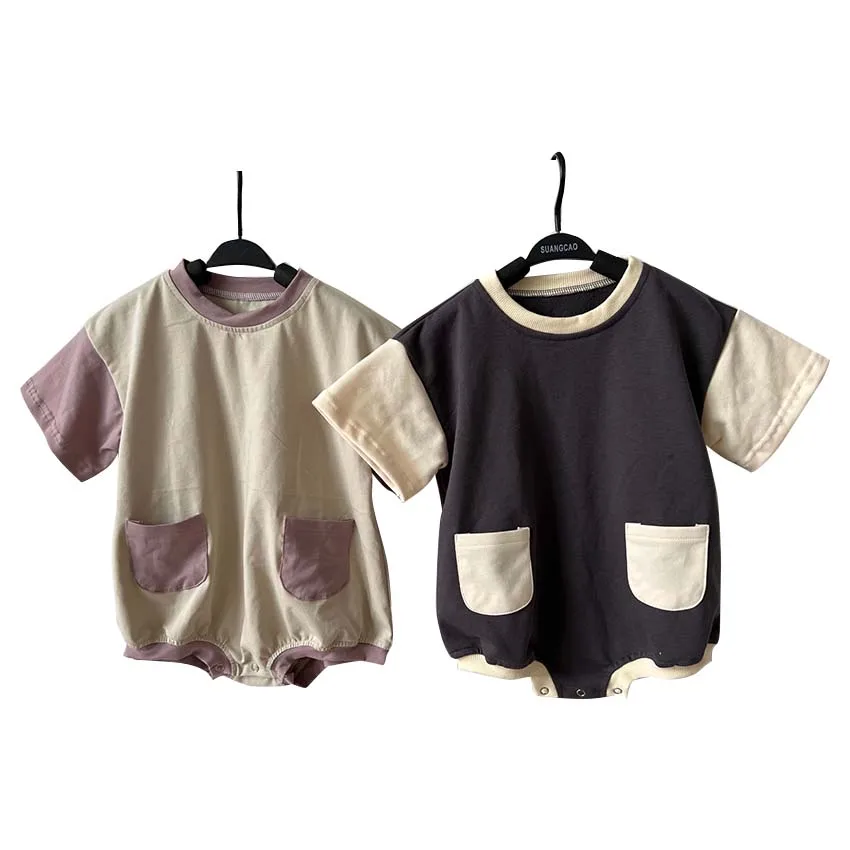 Wholesale Baby Summer Color-block Short Sleeve Sweatshirt Romper with Pocket Baby Boys Girls French Terry Bubble Romper