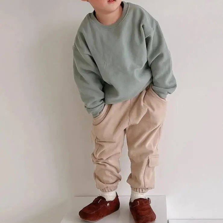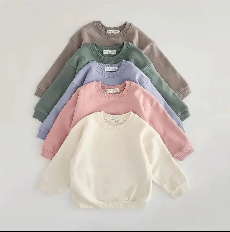 Wholesale Neutral Baby Toddler French Terry Solid Crew Neck Pullover Baby Basic Sweatershirt