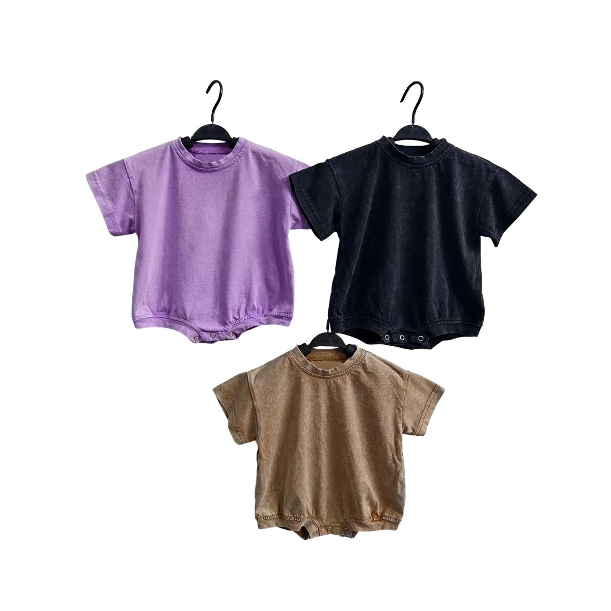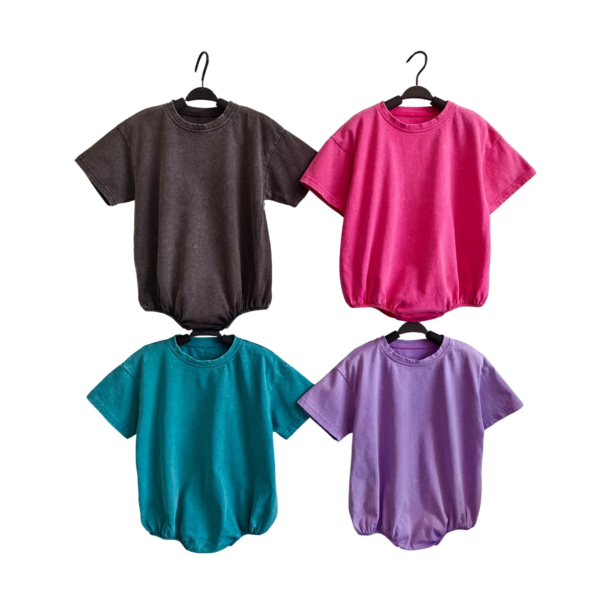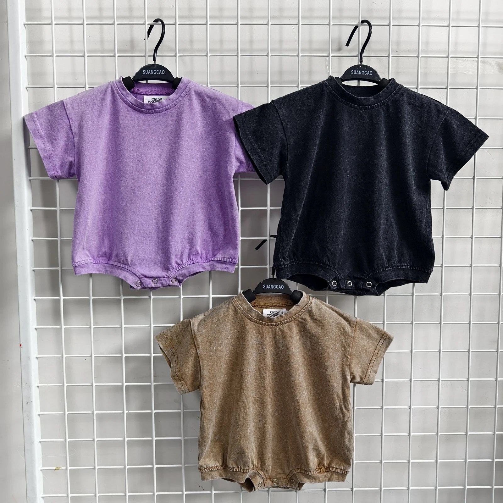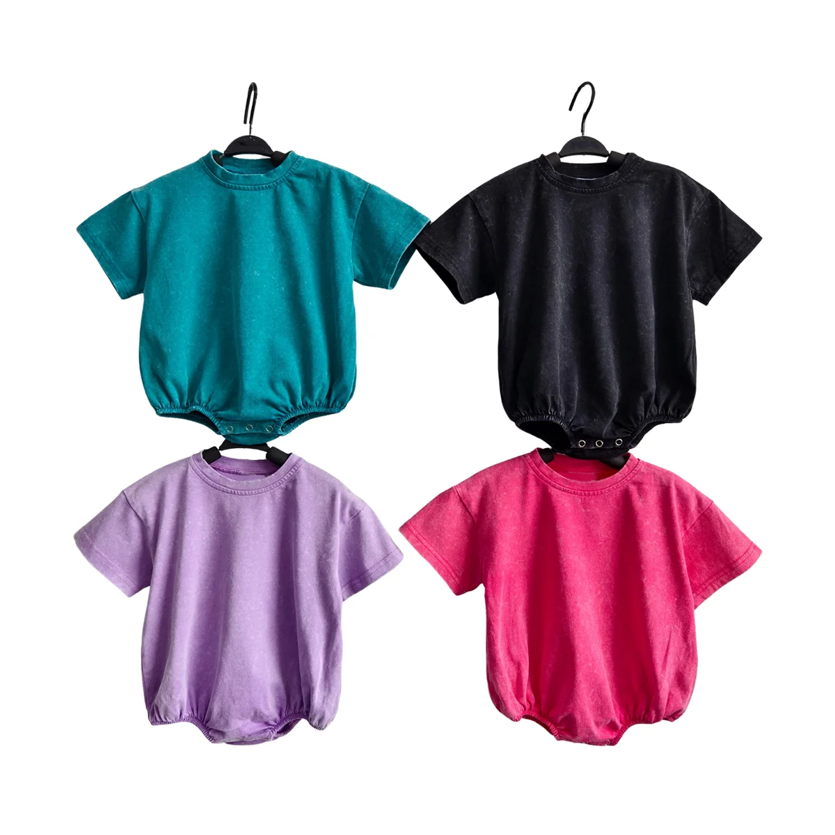 Wholesale Sweatshirt Ruffled Romper Short Sleeve Toddler Baby Acid Wash Knitted Cotton Bubble Romper