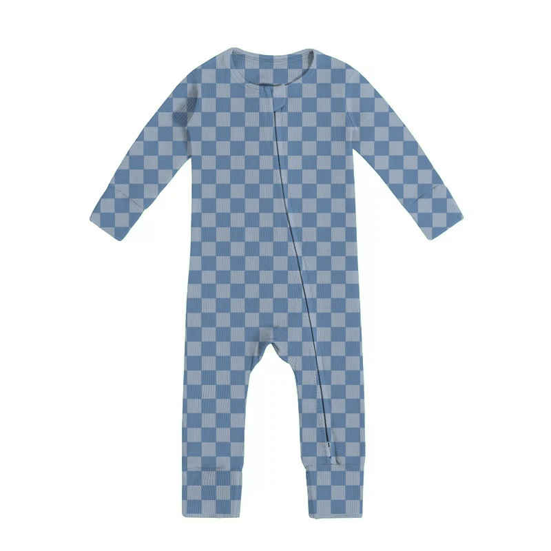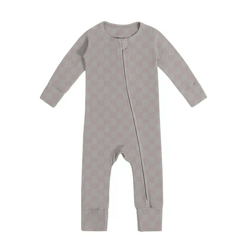 Wholesale Unisex Newborn Checkerboard Knit Long Sleeve Baby Romper Infant Button Down Jumpsuit Custom Baby