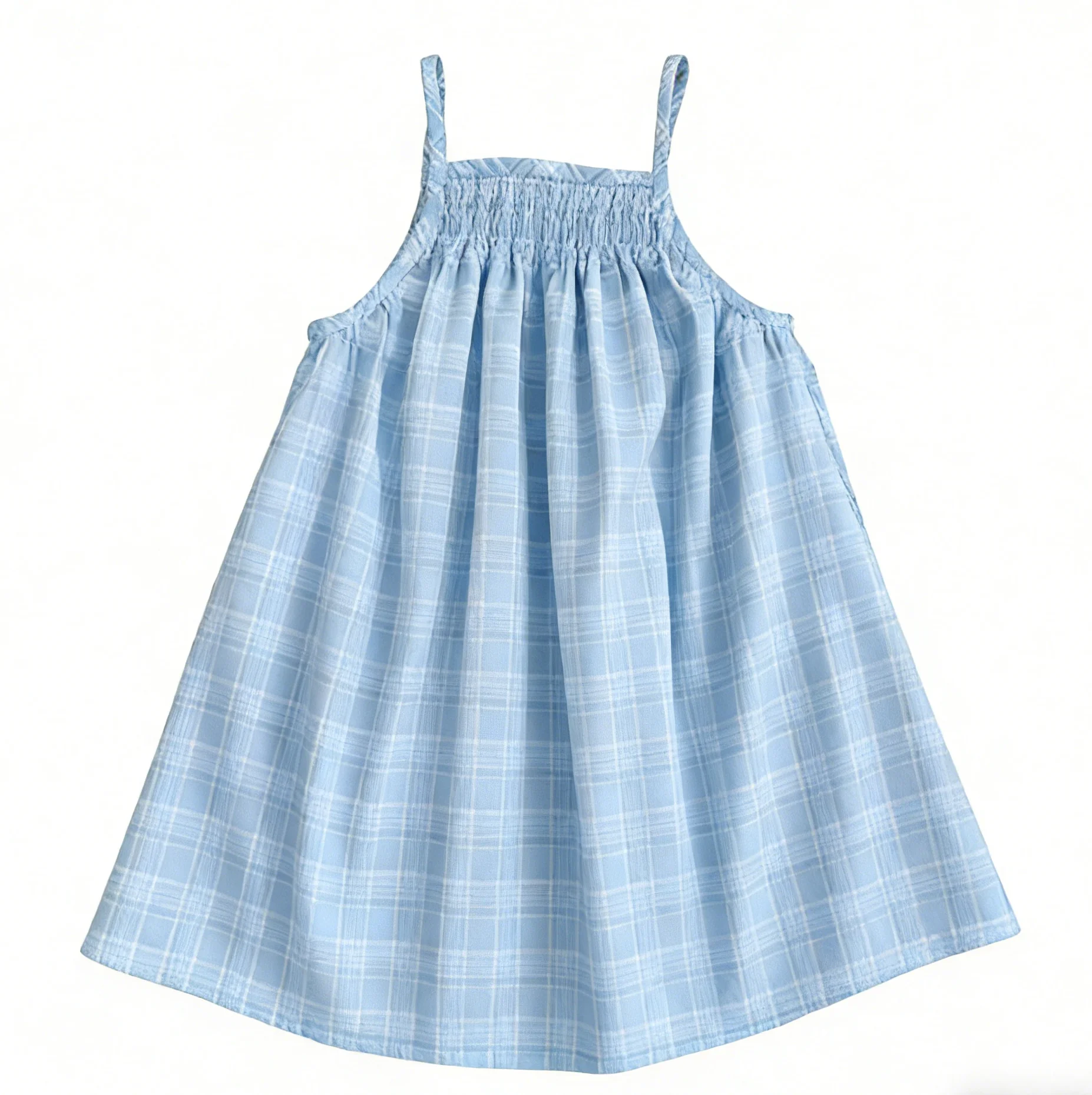 Woven-checkered Wrap Girls’ Skirt Girls’ Camisole Dress Summer Baby Woven-checkered Girls Sleeveless Dress Girl Clothing